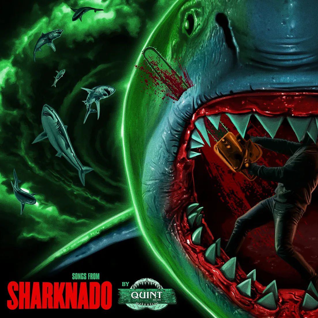 Songs from Sharknado features music by Quint, which is the brainchild of Sharknado franchise Director Anthony C. Ferrante and Musician/Producer Robbie Rist, and features many different genres from rock, power pop, alternative, and even an old school ode to New York. The theme song “(The Ballad of) Sharknado” is a 1970s era rock throwback with instantly catchy hooks and is presented in three different versions for this release. The tracks are performed by Rist and Ferrante, with additional musicians including singer Susie Rose Major (Facedown, Rag Dolls, Rocktober Blood) and The Wrong Dots featuring Jeremy Cohen (Let's  Talk About Girls, The Liberators, The Lads), and Karen Basset (The Pandoras, Rebel Pebbles).