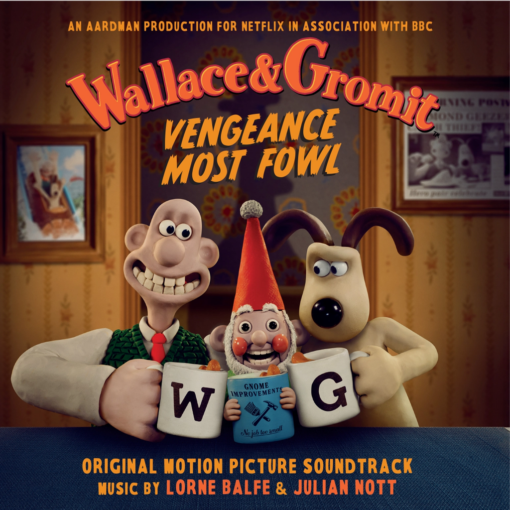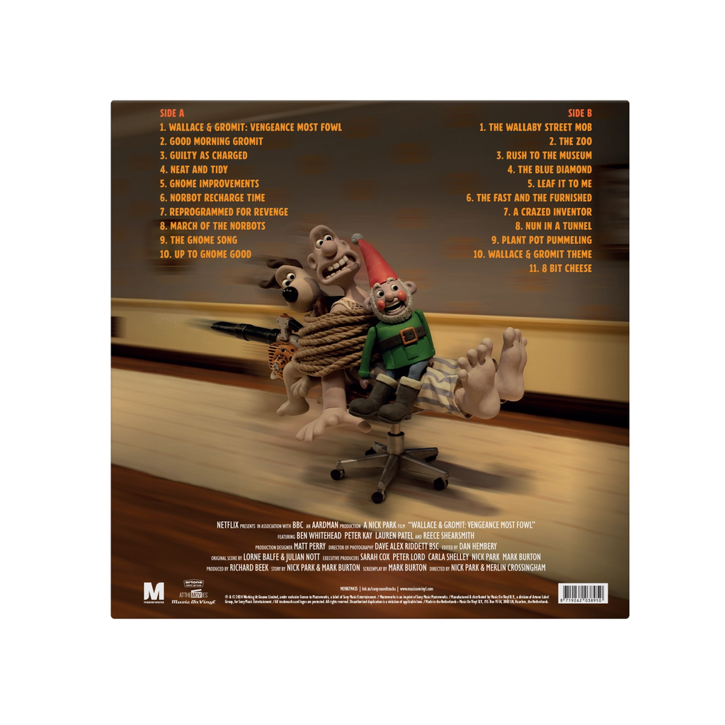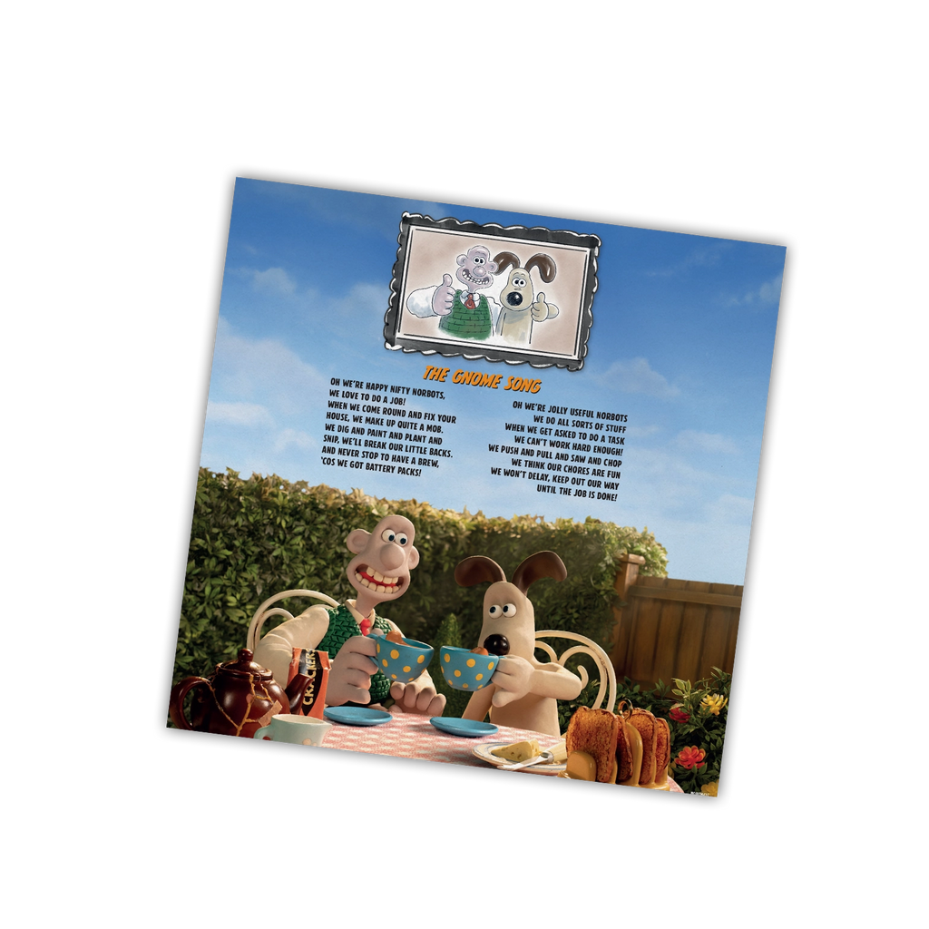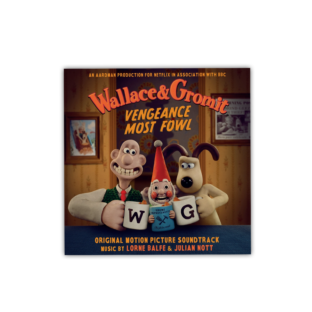 Wallace & Gromit: Vengeance Most Fowl is available as a limited edition of 500 numbered copies on Norbot green coloured vinyl and includes a 4-page booklet with an exclusive drawing by director and creator Nick Park.