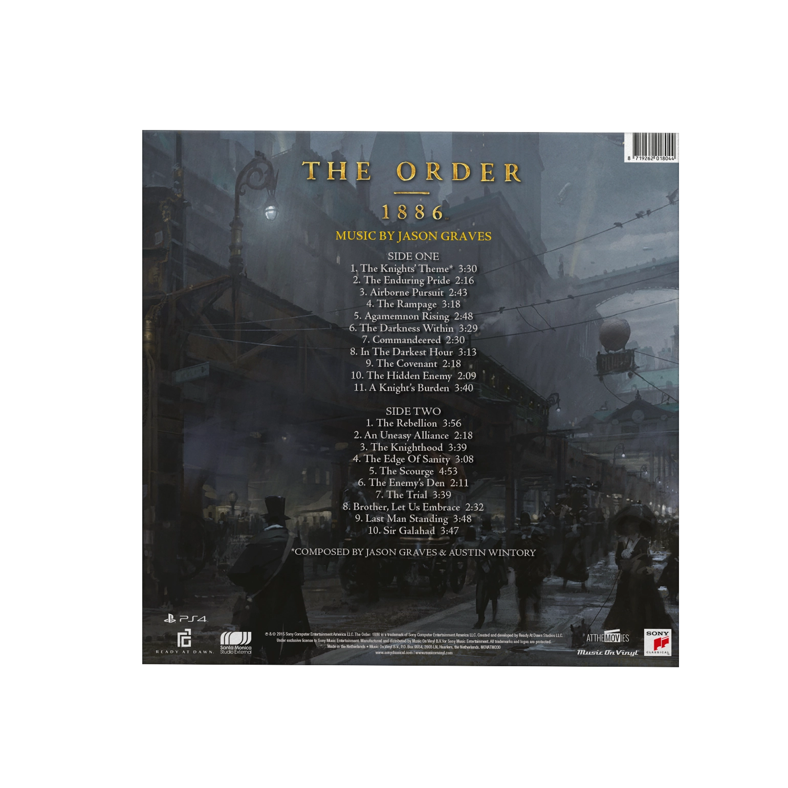 The Order: 1886 is available as a limited edition of 500 individually numbered copies on translucent red coloured vinyl. It comes in a gatefold sleeve with leather laminate finish and includes a 4-page booklet with liner notes.