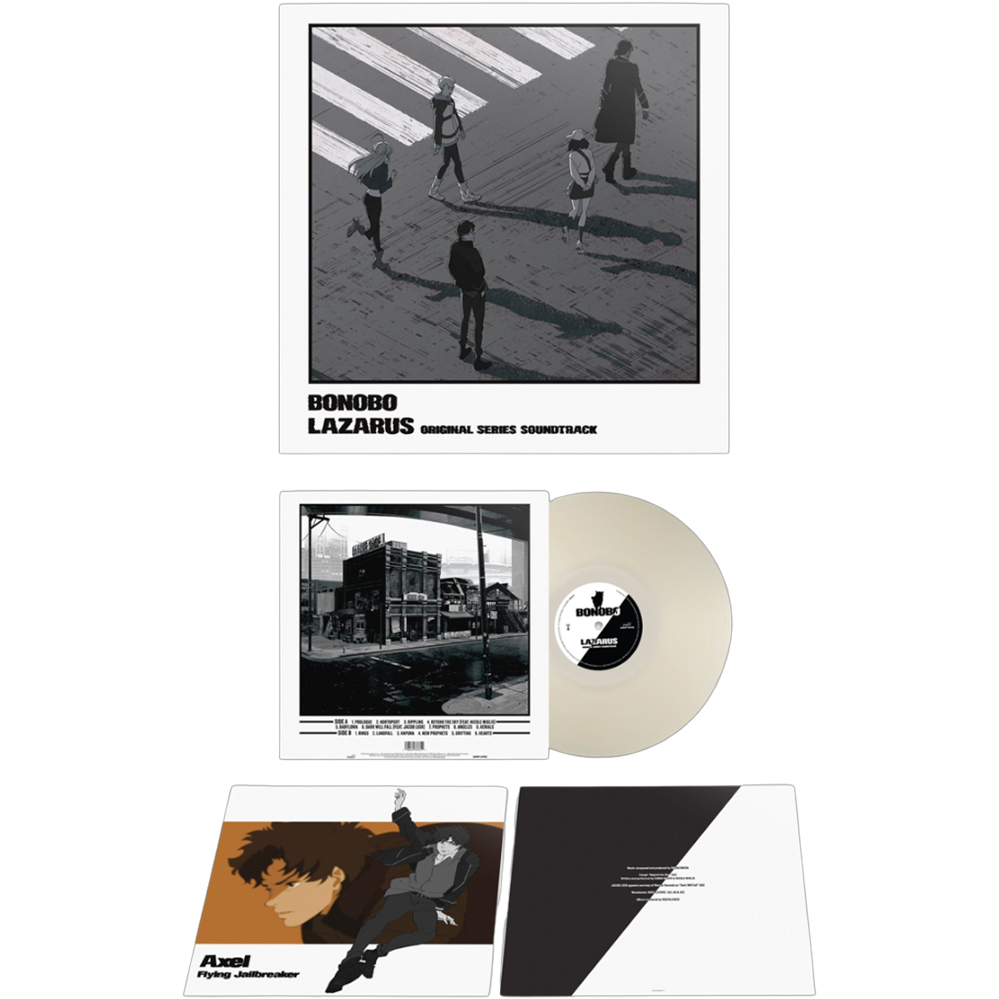 Bonobo’s 15-track score for Lazarus delivers a hypnotic and immersive musical experience for Shinichirō Watanabe’s anime epic. Blending electronic, trip-hop, and cinematic textures, Bonobo captures the tension, drama, and atmospheric intensity of a world where the miracle drug “Hapna” spirals from salvation to catastrophe. Each track pulses with intricate rhythms, lush synth layers, and subtle sound design that heighten the suspense and emotional resonance of the series.