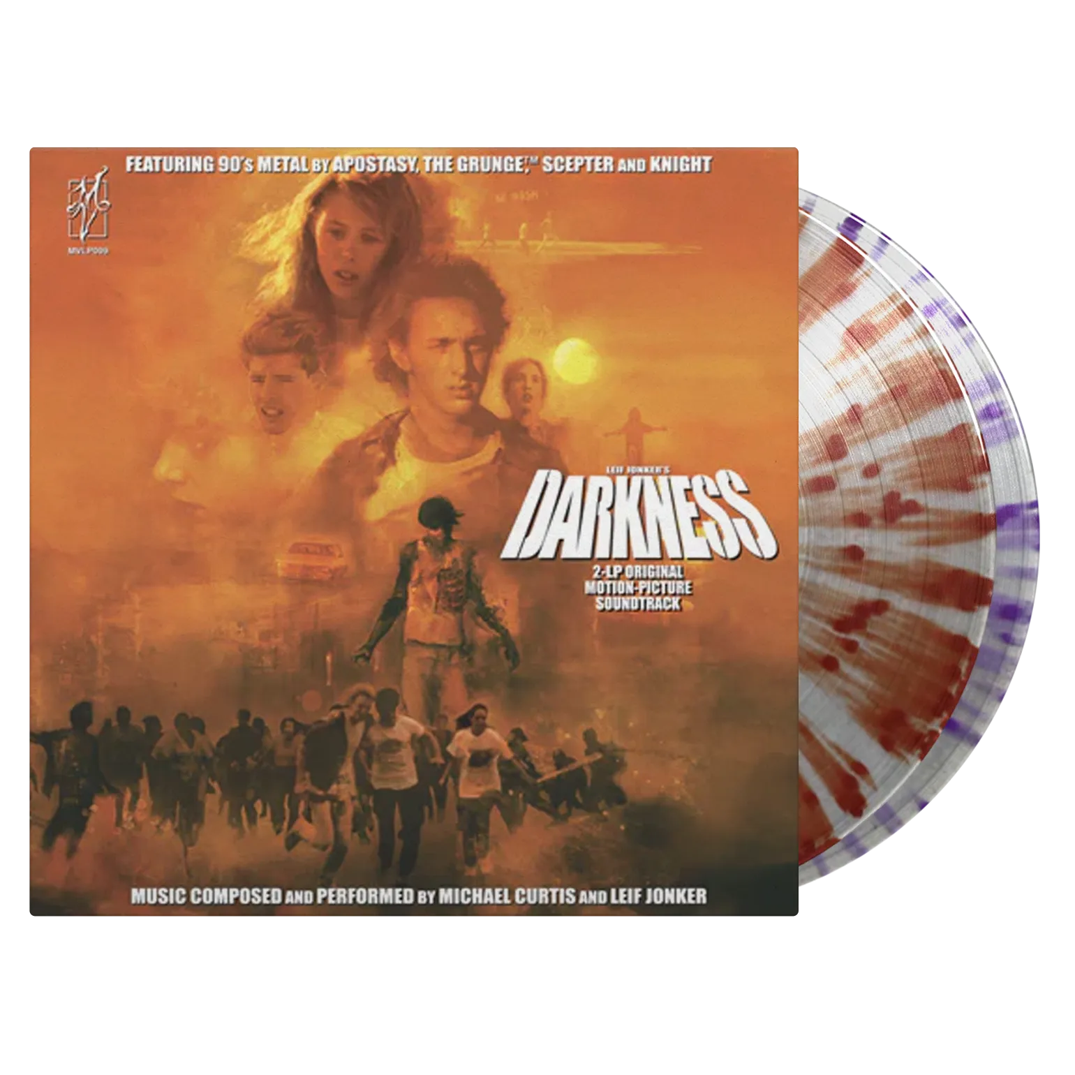 Leif Jonker’s Darkness (Original Motion Picture Soundtrack) is the official soundtrack to the legendary 1993 vampiric splatter cult film, now available on vinyl for the very first time. This definitive 2LP edition presents the complete film score alongside the full thrash and death metal soundtrack that helped define the film’s raw underground energy.