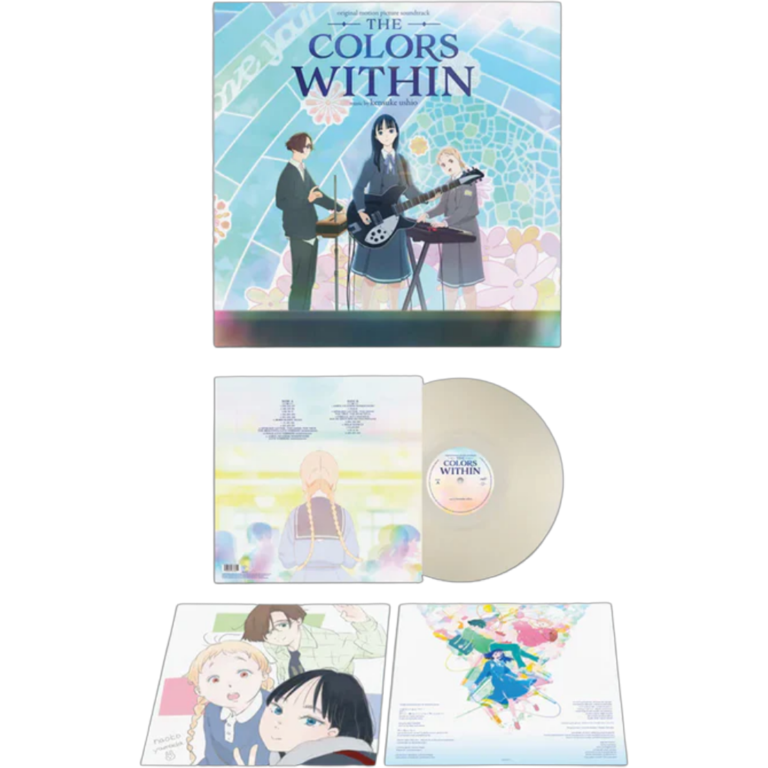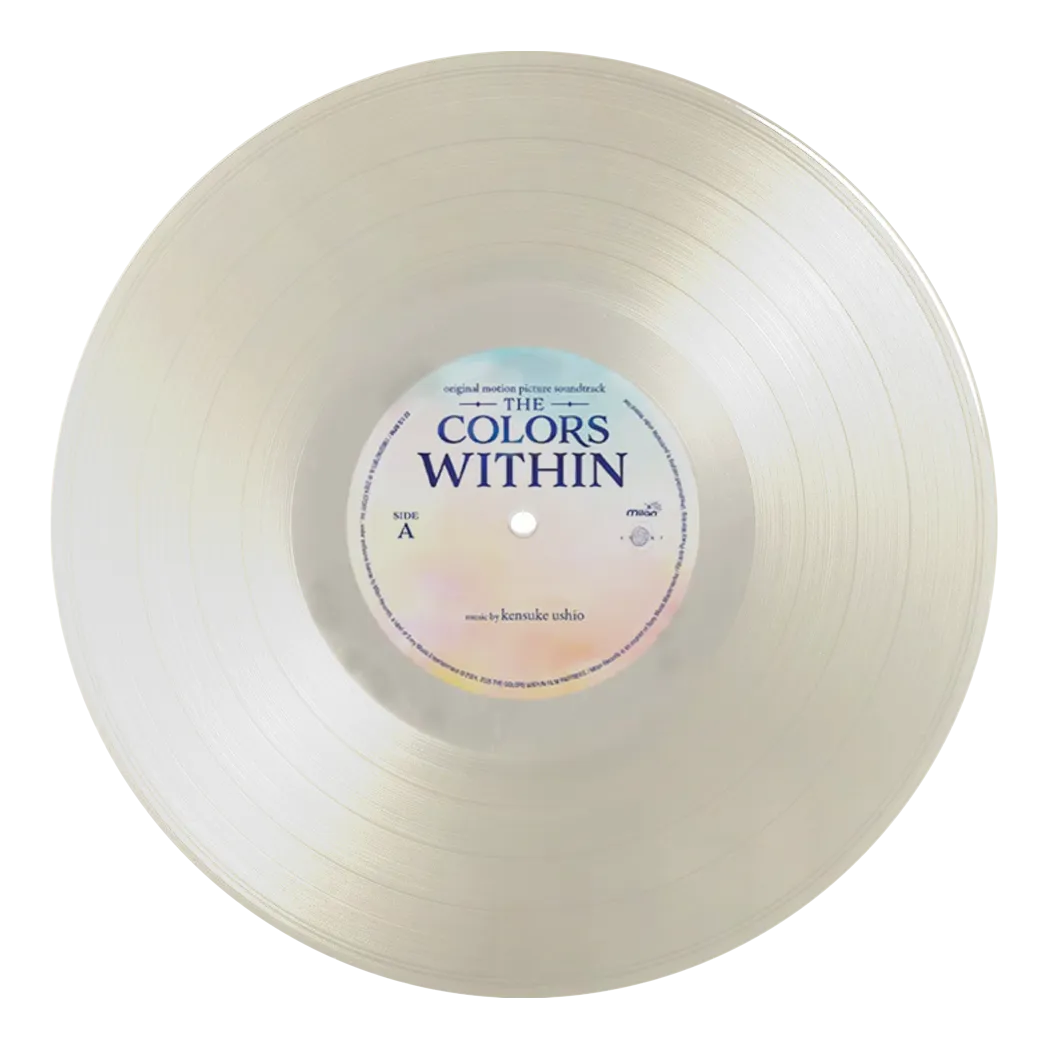 Step into The Colors Within, where Totsuko sees emotions as colors and discovers real connections through music with Kimi and Rui. Kensuke Ushio’s score brings their world to life with glowing melodies and intimate textures. This vinyl edition pairs the soundtrack with special artwork from the film and a translucent milky-clear LP inspired by its soft, dreamlike palette. Featuring highlight tracks like “Apology letter: The Good, the True, the Beautiful,” “Amen I’m going somewhere,” and “Walk,” this release is a must-have for fans who felt every hue of this beautiful story.